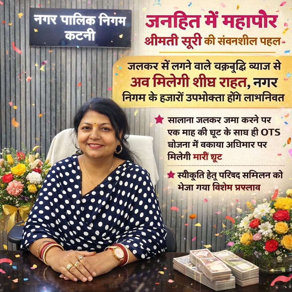 जनमत हिन्दी। कटनी नगर निगम क्षेत्र के हजारों जलकर उपभोक्ताओं के लिए बड़ी राहत देने की पहल की है। महापौर…